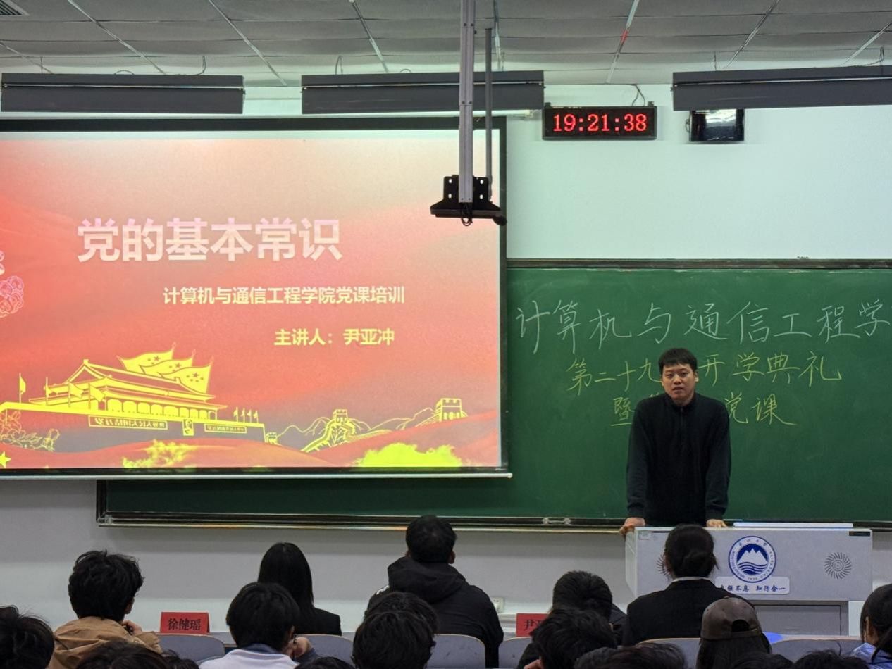 开班仪式结束后,党校指导教师、辅导员尹亚冲为学员们带来了以“入党流程与党的组织”为主题的第一次党课。课程中,尹亚冲老师从申请入党基本条件讲起,梳理从递交入党申请书至成为正式党员的完整流程,讲解了入党积极分子的确定与培养、发展对象的考察、预备党员的接收与转正等关键环节,并介绍了党的组织架构,阐释党的中央组织、地方组织及基层组织的设置与职能,帮助学员明晰入党路径,深化对党组织体系的认知。