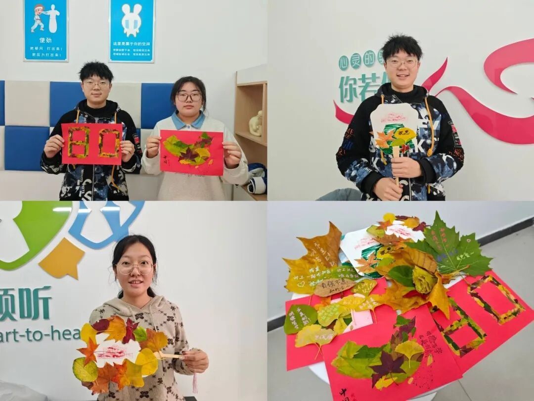 在手工创作环节,同学们以拾取的树叶为笔,以画布为纸,充分发挥想象力与创造力,将自然之美与历史主题巧妙结合。本次创作紧扣纪念中国人民抗日战争暨世界反法西斯战争胜利80周年这一主题,同学们将五彩的树叶精心构图,拼贴出“80”的数字,用这种独特的方式表达对革命先烈的缅怀,以及对来之不易的和平生活的珍视;有的作品以树叶勾勒出中国地图的轮廓,表达了对伟大祖国的深情依恋;另一些作品则再现了校园标志性建筑与秋日美景,将对母校的热爱融入画中。