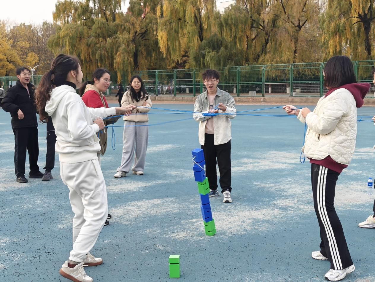 协作项目中,“球行万里”考验团队衔接的默契,“抛绣球”展现配合的精准,“不倒森林”彰显集体的稳定,“合力建塔”凝聚共同的目标,“万众一心”迸发团结的力量。师生们并肩作战、紧密配合,眼神交汇间达成默契,手手相传中凝聚合力,在一次次闯关突破中斩获佳绩,用行动诠释“1+1>2”的协作真谛。