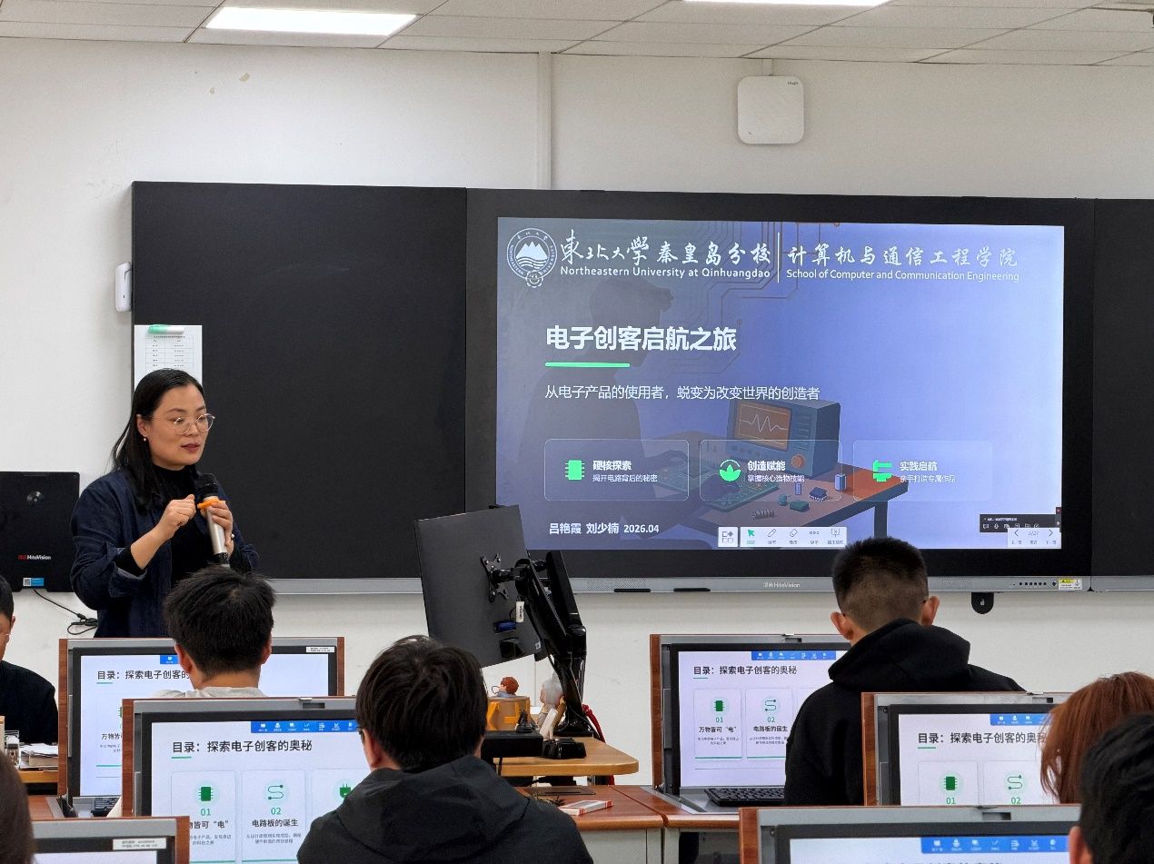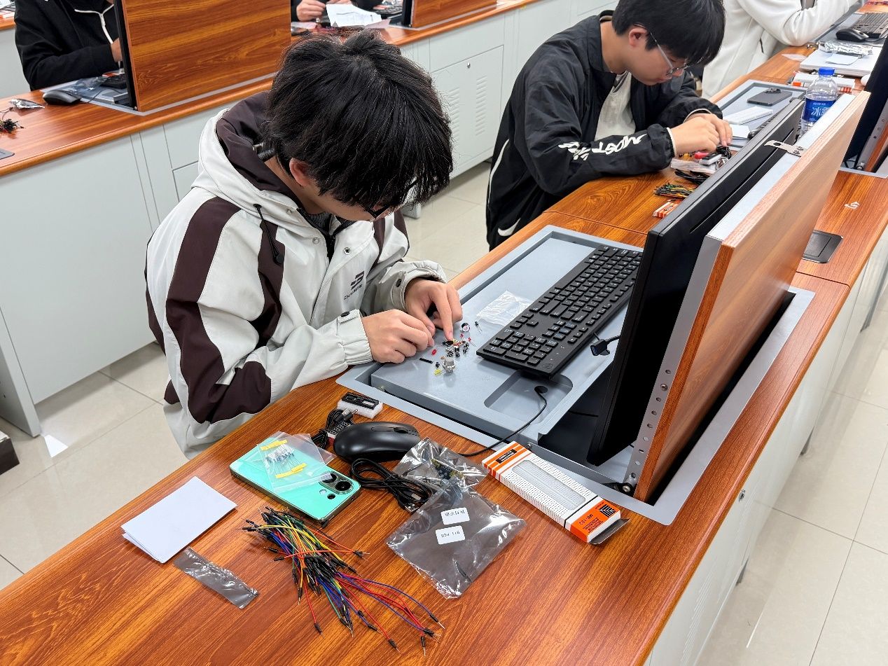 值我校第二十二届大学生科技节之际,为进一步激发学生创新热情,提升实践动手能力,助力学生从电子产品的使用者向创造者转变,4月12日下午,我院“计”往无前,“电”亮梦想——第一期电子创客启航活动在综合楼1204实验室举行。活动由吕艳霞、刘少楠两位老师主讲,吸引了2024级、2025级众多对电子创客领域充满好奇与热情的学生积极参与,现场气氛热烈。