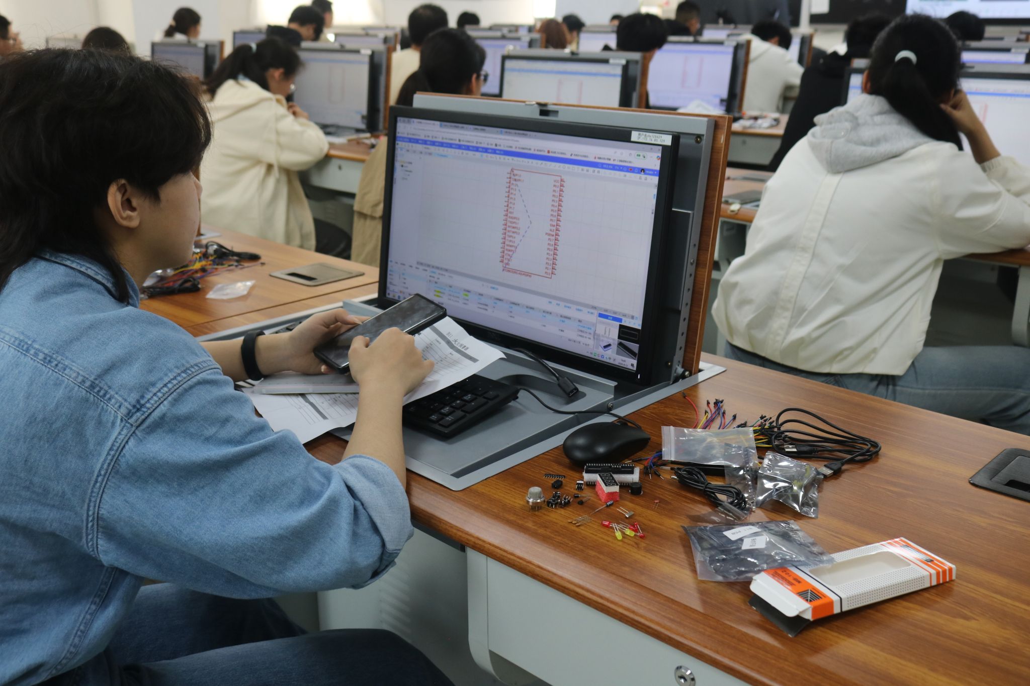 随后,活动进入核心环节——电路板诞生过程揭秘。作为电子产品的重要基础载体,电路板的制作原理与实现流程始终令同学们充满好奇。吕艳霞结合图文演示和通俗讲解,从器件选型、电路原理图设计、PCB设计与制作到组装测试,对电子产品开发的全过程进行了系统介绍,不仅帮助同学们建立起对电子产品自主开发的整体认知,也为今后开展创新实践提供了方法指导和工具启发。