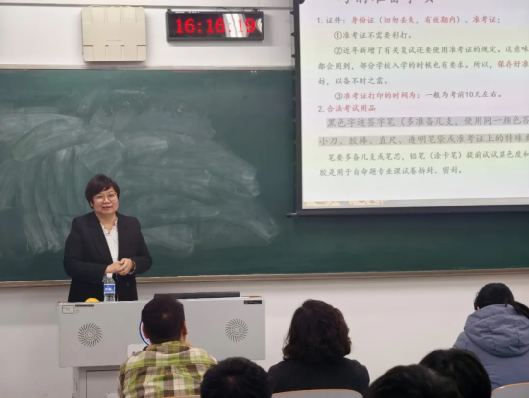陈晶晶为各位考研学子讲解考试注意事项,表达了对大家顺利通过考试的殷切期盼,以及对学子成长成才的深切关怀。