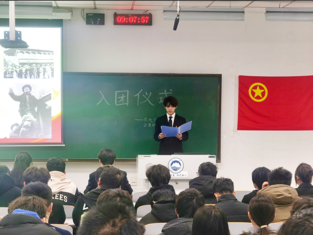 团委副书记李杨带领团员们举行入团宣誓仪式,领誓人李杨逐句诵读宣誓文字,宣誓人齐声跟读。