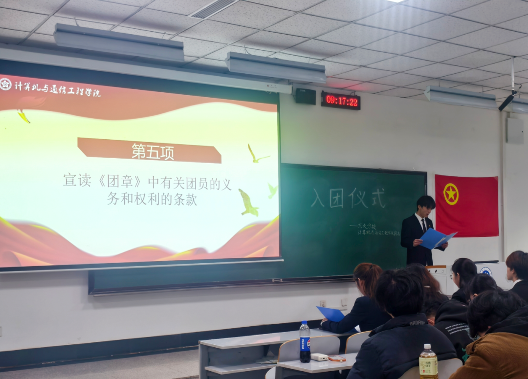 计算机与通信工程学院于11月30日上午在工学馆129室举行2025级新生入团仪式,参会人员有计算机与通信工程学院团委学生会主席团成员,计算机与通信工程学院2025年新发展团员以及优秀团员代表。